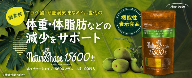 現在展開されている「ネイチャーシェイプ15600プラス」は、エラグ酸に加え、自然由来のボディケア成分を複数配合している点が特徴です。日々の生活に無理なく取り入れやすいよう、90粒入りで約30日分の設計になっています。