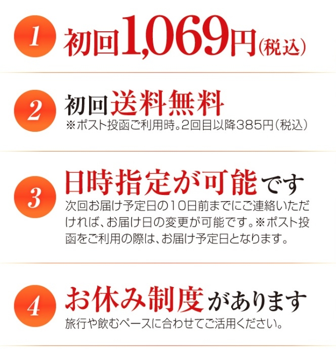 いきなり5,000円以上のサプリメントを購入するのは勇気がいるものですが、初回1,069円であれば、体型管理を意識する第一歩として取り入れやすい設計といえるでしょう。
