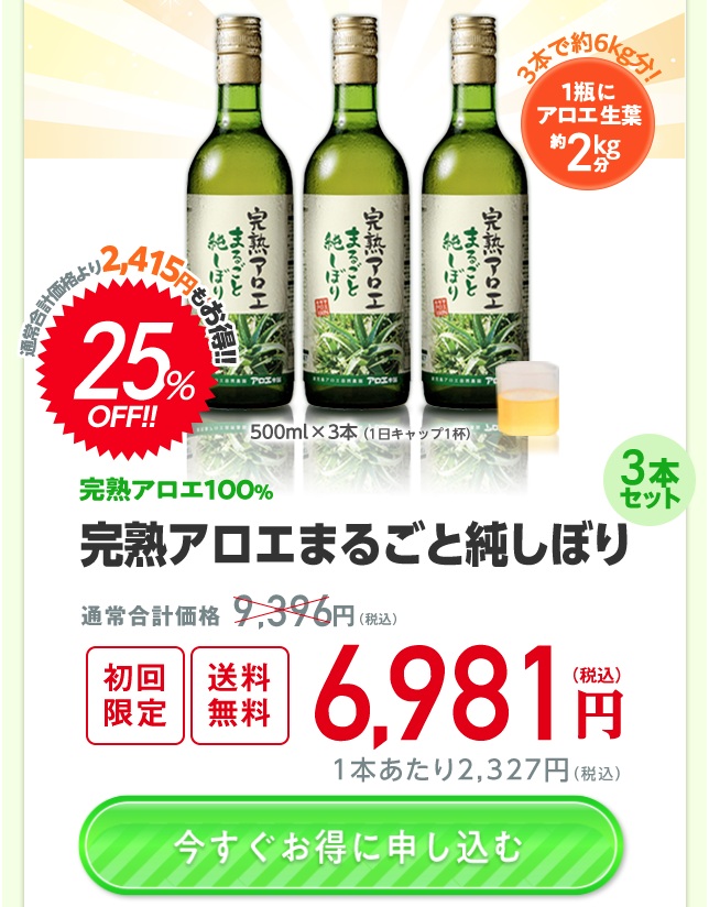 完熟アロエまるごと純しぼりの価格は?公式購入が最もお得な理由