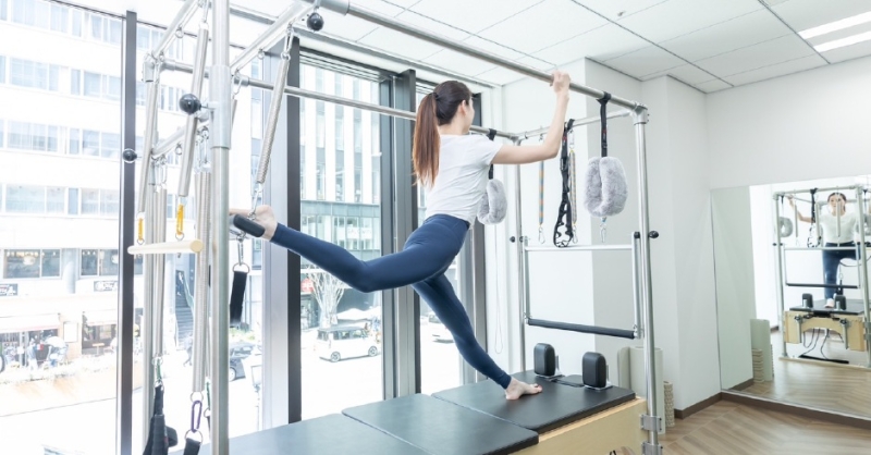 マシンピラティスは、専用のリフォーマーなどの器具を使用し、身体の動きをサポートしながらインナーマッスルにアプローチしていくトレーニング方法です。自重だけでは難しい動きも、マシンの補助があることで無理なく行えるため、初心者でも始めやすいと言われています。