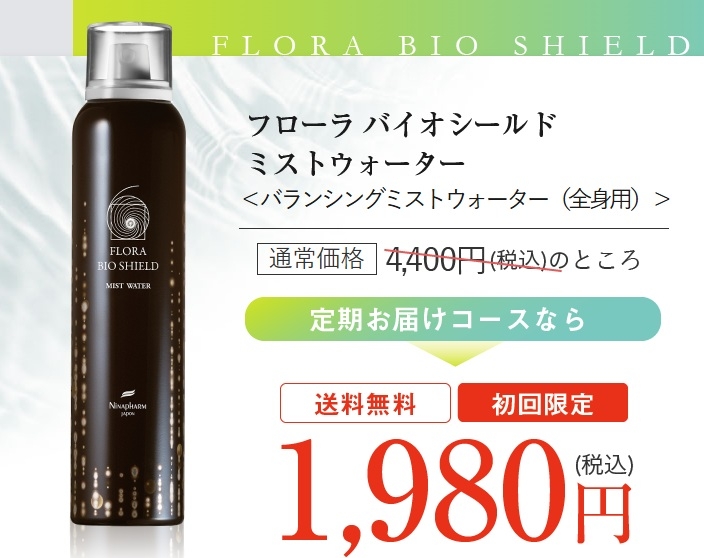 フローラ バイオシールド ミストウォーターは、公式サイトの定期お届けコースを利用することで、初回1,980円(税込)・送料無料で試すことができます。