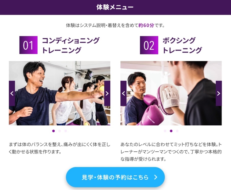 予約が完了すると、当日は施設の見学やトレーニング体験を行うことができます。トレーナーがサポートしてくれるため、ボクシングが初めての方でも安心して参加できます。
