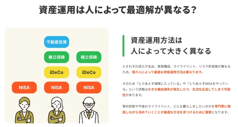 そうした中で注目されているのが、資産運用を一から教えるのではなく、状況を整理し、選択肢を明確にするサポートです。