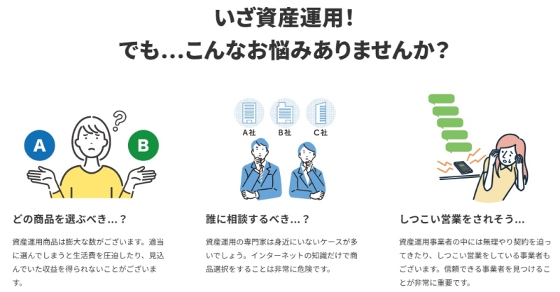 このスタンスがあるからこそ、資産運用に対する不安を抱えている人でも利用しやすいのが特徴です。
