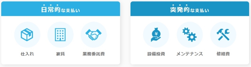 外注費や仕入れ費用など、突然発生する支払いにも間に合わせやすいのが大きなメリットです。