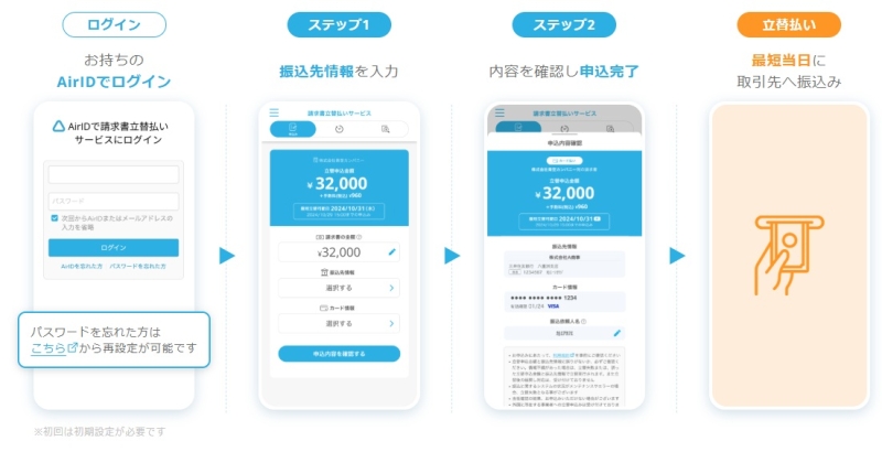 請求書立替払いサービスは、複雑な申込フローがない点も特徴です。