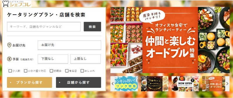 シェフコレは単なる宅配グルメサイトではなく、「オードブルデリバリー」と「ケータリング」の両方に対応しています。