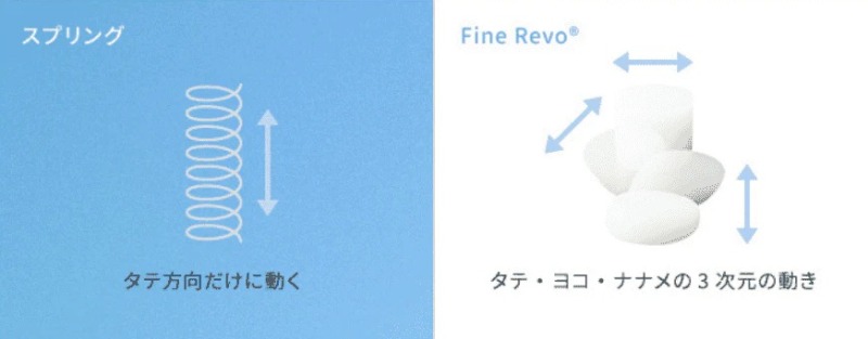 - スプリングでもウレタンでもない独自素材「ファインレボ(Fine Revo)」を採用