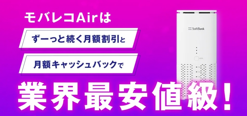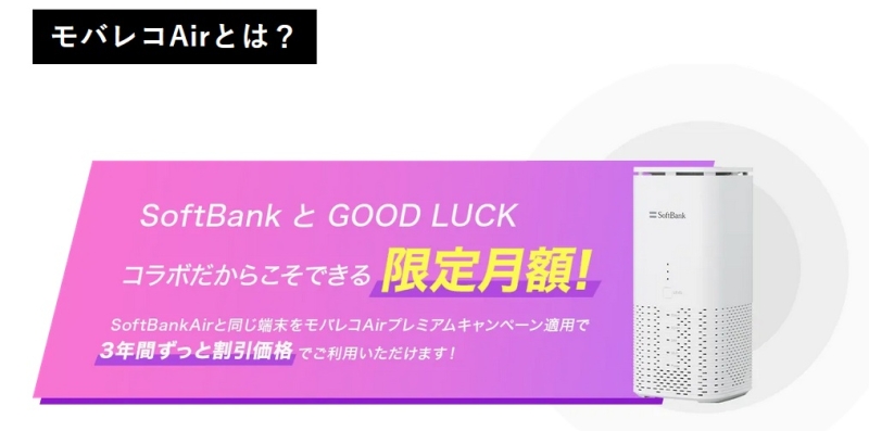 モバレコAir(モバレコエアー)は、ソフトバンク株式会社と株式会社グッド・ラックが共同で提供する置くだけWi-Fiサービスです。