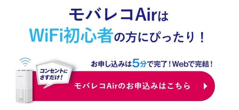 工事不要でコンセントに挿すだけ、最短で翌日にネットが使える「モバレコAir(モバレコエアー)」が今注目を集めています。