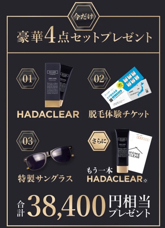 今だけのキャンペーンで、合計38,400円相当の豪華4点セットがプレゼントされます。