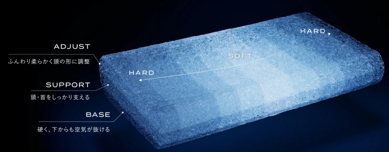 ブレインスリープ ピローは、内部に空気層を多く含む特殊な構造を採用しています。