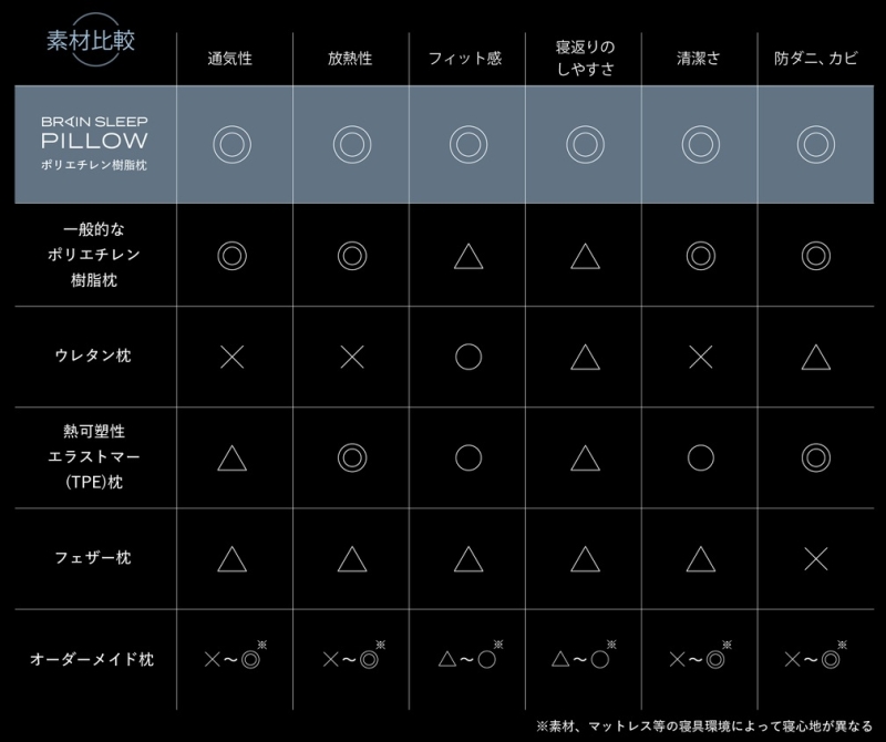 ブレインスリープ ピローが一般的な枕と大きく異なる点は、