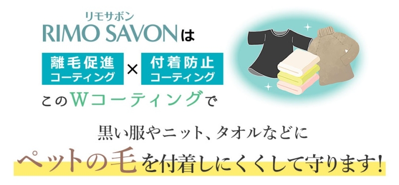 リモサボンは、犬や猫の抜け毛が衣類に付着しやすくなる原因に着目し、洗濯時の衣類環境を整えることを目的としています。