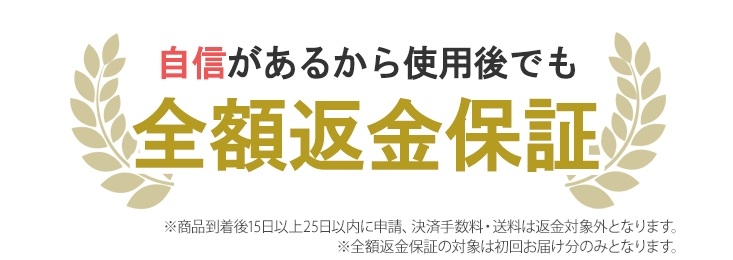 万が一、使用後に合わないと感じた場合でも、条件を満たせば返金対応の対象となるため、初めてでも検討しやすい点が特徴です。