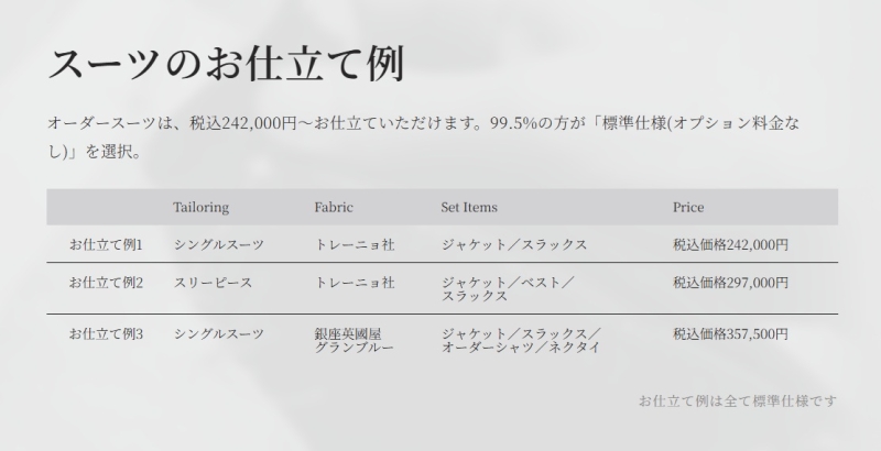 既製スーツや低価格帯のオーダースーツと比較すると、銀座英國屋の価格は決して安くはありません。
