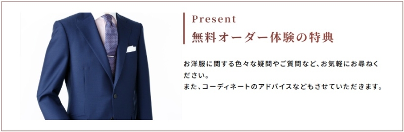 記事内でも触れた通り、銀座英國屋では無料オーダー体験が用意されています。