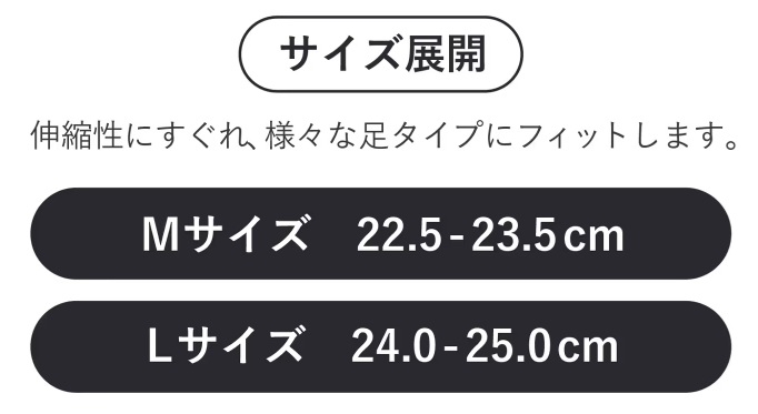 伸縮性に優れた素材が採用されており、足の形にフィットしやすい設計になっています。