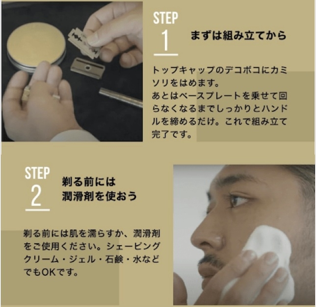 ヘンソンシェービングは一枚刃タイプですが、構造は非常にシンプルです。初めて使う方でも、基本の流れを押さえれば難しく感じることはありません。