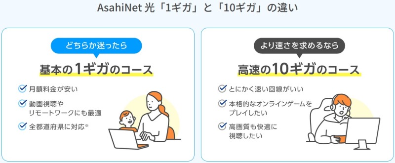 Asahiネットは1ギガ/10ギガを選べるうえに提供エリアが広いため、多くの人が利用できる現実的な選択肢といえます。