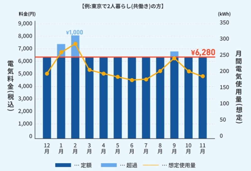 このプランは、毎月の電気代が一定額で変動しない“定額制”が特徴。