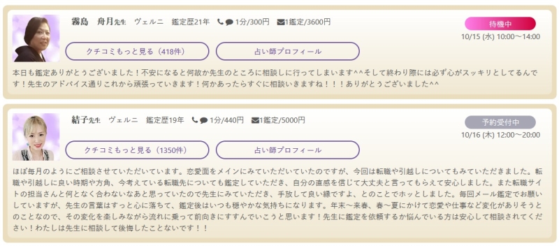 口コミを見ても、「当たる」「親身に寄り添ってくれる」「安心して相談できる」といった好意的な声が圧倒的に多く、長く利用され続けている理由がよく分かります。