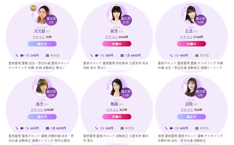 鑑定スタイルや得意ジャンルを参考に、あなたに合う先生を見つけてみてください。