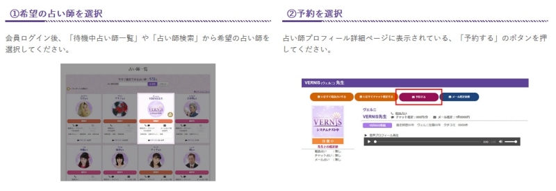 占いヴェルニの登録から鑑定までの流れはとてもシンプルです。