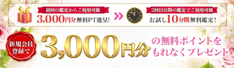 初回特典の「3,000円分無料ポイント」を活用すれば、実質無料で本格的な鑑定を体験することも可能です。