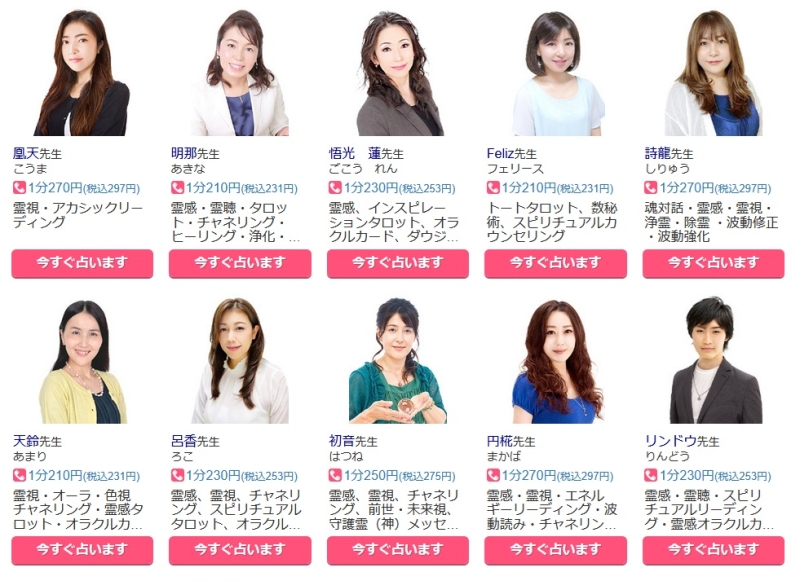 - 鑑定料:1分190円〜(税込)