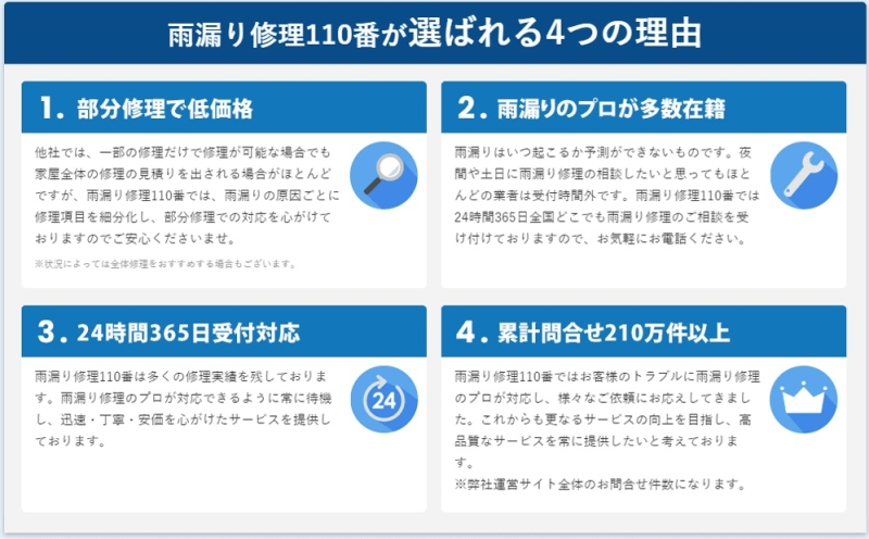 雨漏り修理110番の特徴