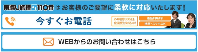 - ✅ 雨漏り修理110番:24時間365日同一料金で対応