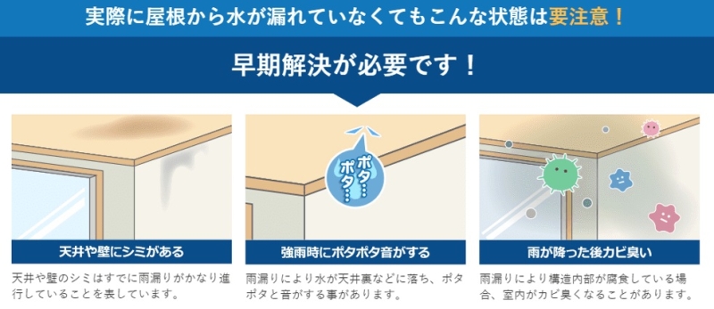 「まだ屋根から水が落ちていないから大丈夫」と思っている人も要注意です。