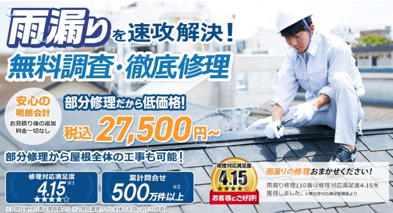 - ✅ 雨漏り修理110番:調査・見積すべて無料