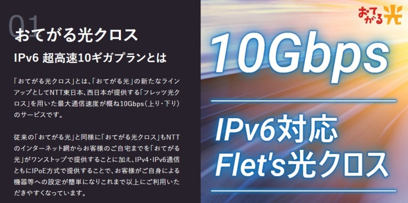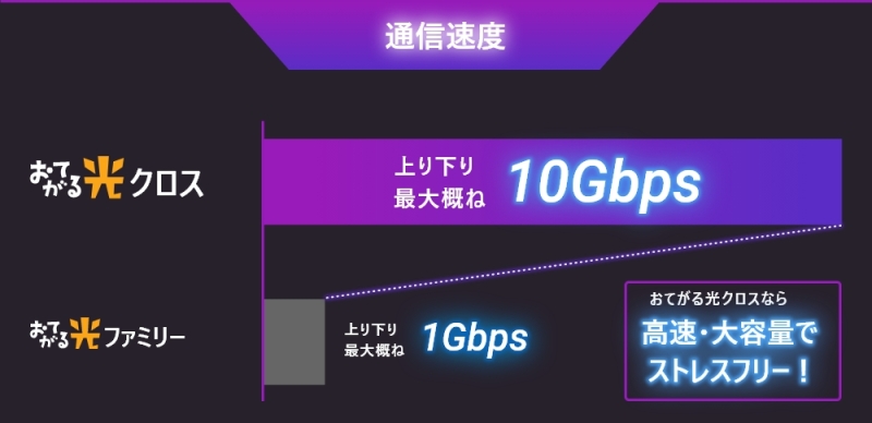 さらに高速通信を求める方には、最大10Gbpsの「おてがる光クロス」が用意されています。
