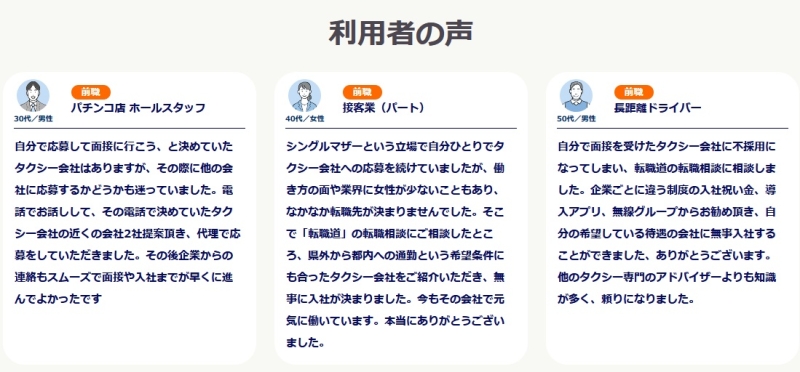 一般的な総合転職サイトとは異なり、タクシー業界に特化している点が最大の特徴です。