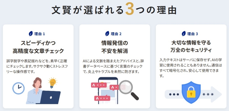 ここからは、文賢がどんなサービスなのか、その特徴を分かりやすく紹介していきます。
