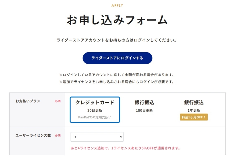 導入を決めたら、公式サイト内の申し込みフォームにアクセスします。