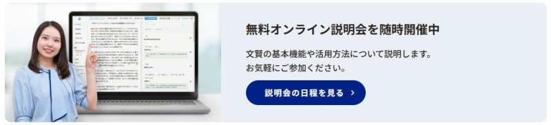 まずは無料オンライン説明会に参加して、文賢の使い方や活用イメージを確認してみてください。