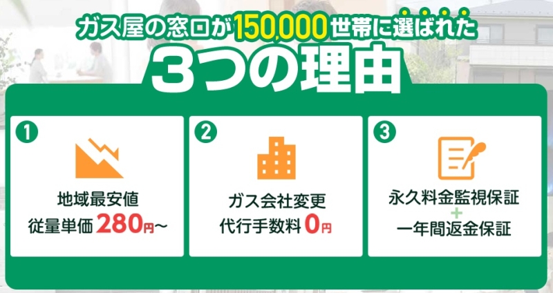 「ガス屋の窓口」は、プロパンガスを利用している家庭向けに、ガス料金の見直しをサポートする無料サービスです。