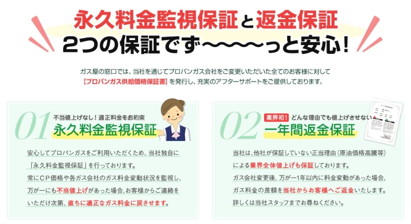 永久料金監視保証と返金保証|ガス会社変更後も安心できる理由