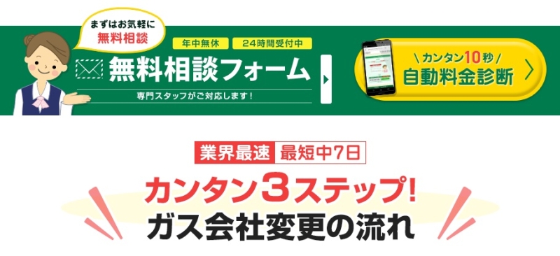 また、ガス料金の相談や比較、ガス会社変更に伴うサポートはすべて無料で行われます。