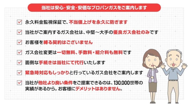 永久料金監視保証は、ガス会社変更後の料金が不自然に上がっていないかを継続的に確認する仕組みです。