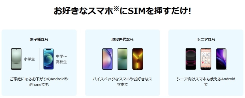 特に、子供用スマホやシニア向けスマホとして検討されることが多く、家族での利用を前提にした考え方が特徴です。