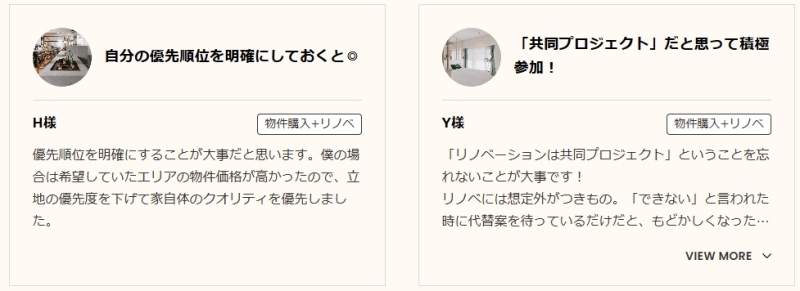 物件選びの段階から「この家はリノベ向きかどうか」という視点でチェックしてもらえるため、購入後の後悔を減らしやすいのが特徴です。