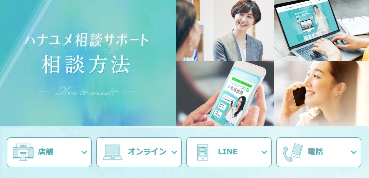 ハナユメの特徴として、店舗やオンラインでの相談サービスが用意されている点が挙げられます。デスク相談を利用することで、割引や特典を含めた条件整理をまとめて進めやすくなります。