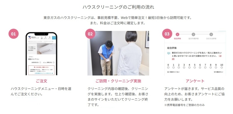東京ガスのハウスクリーニングは、エアコンクリーニングを含めて申し込みから作業完了までの流れが非常にシンプルです。