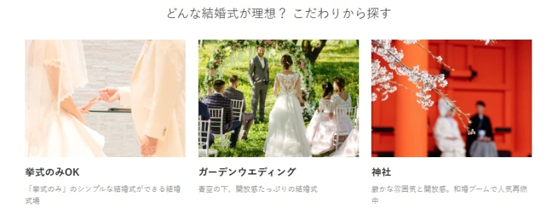 - 少人数婚やフォトウェディングなど、条件別に探しやすい