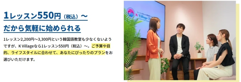 K Villageは、韓国語学習を始めるハードルを下げる料金設計が特徴です。