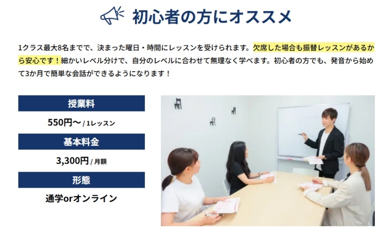 どの語学教室にも共通しますが、講師によって教え方や雰囲気が異なるため、合う・合わないを感じる人もいます。